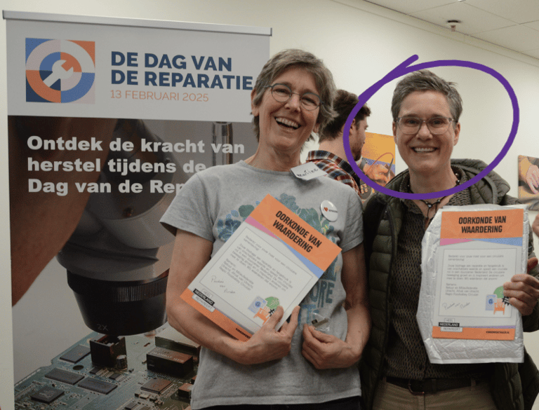Not only was I endlessly inspired by Soenita, I was also surprised by the amount of positivity and enthusiasm a person can contain in the shape of Pauline van Norden. After conducting the five interviews with repair cafe organisers, I joined Pauline in her car to tour across Utrecht during the week of circular economy in which ‘Heel Nederland Repareert!’ launched. We drove from event to event to acknowledge, congratulate, and talk to people who put their heart and soul into promoting and furthering sustainability. During these trips I was in awe of Pauline’s inexhaustible drive and creativity when it came to making connections and helping others connect in order to achieve their goals.
